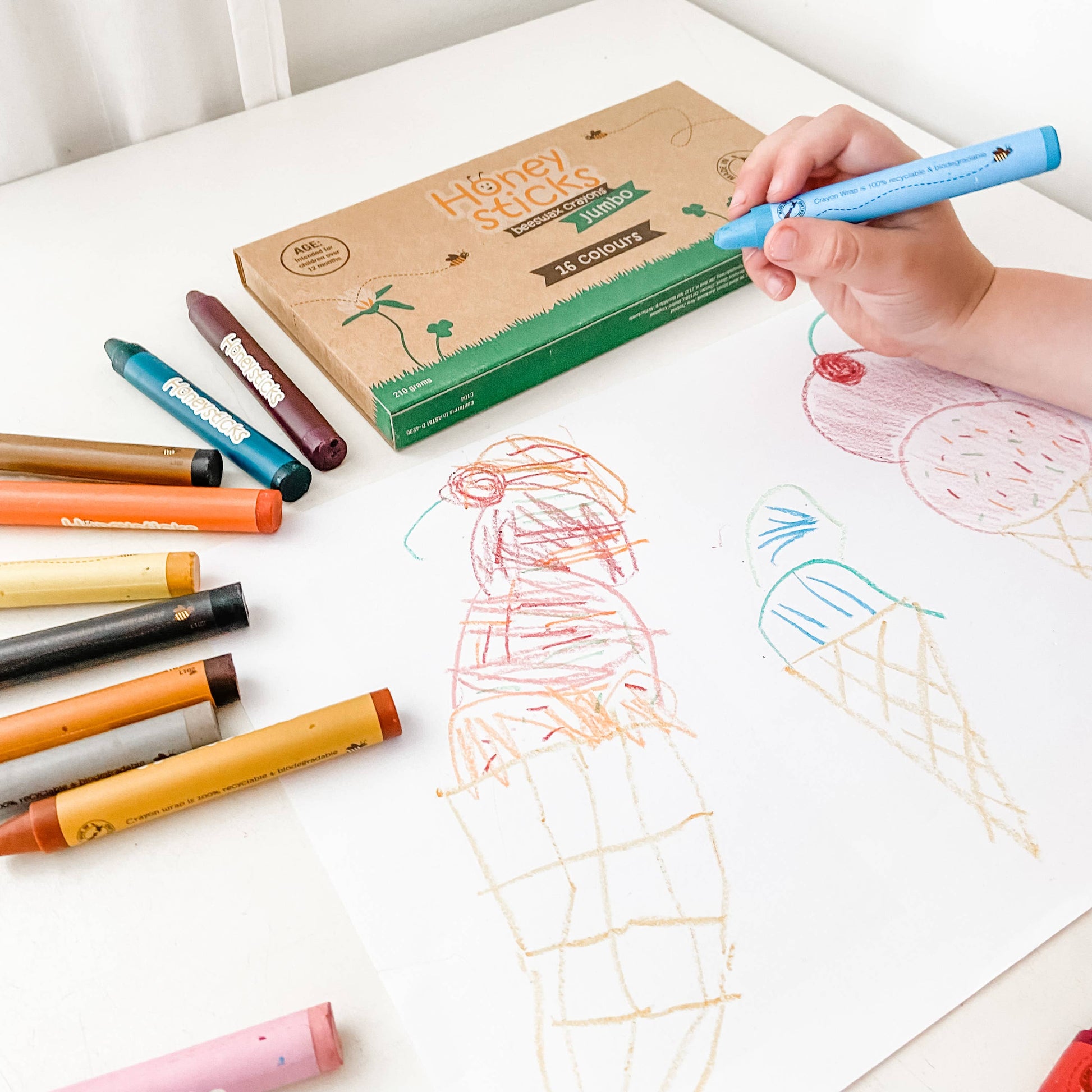 Honeysticks Jumbo’s are the perfect crayons for hours of creative colouring and art projects. Safer, bigger and more durable than most traditional and comparable products, these natural crayons last the distance and are designed to help kids refine their pencil grip.