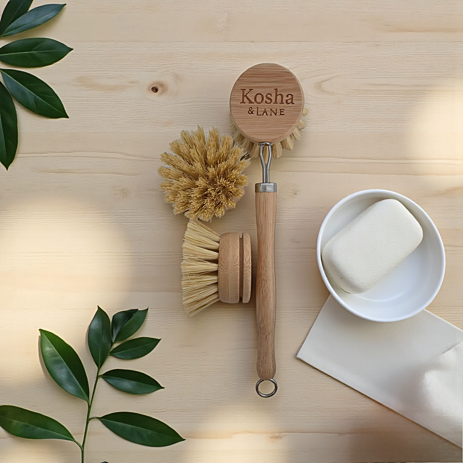 Kosha & Lane Bamboo Dishwashing Brush with Replacement Heads set