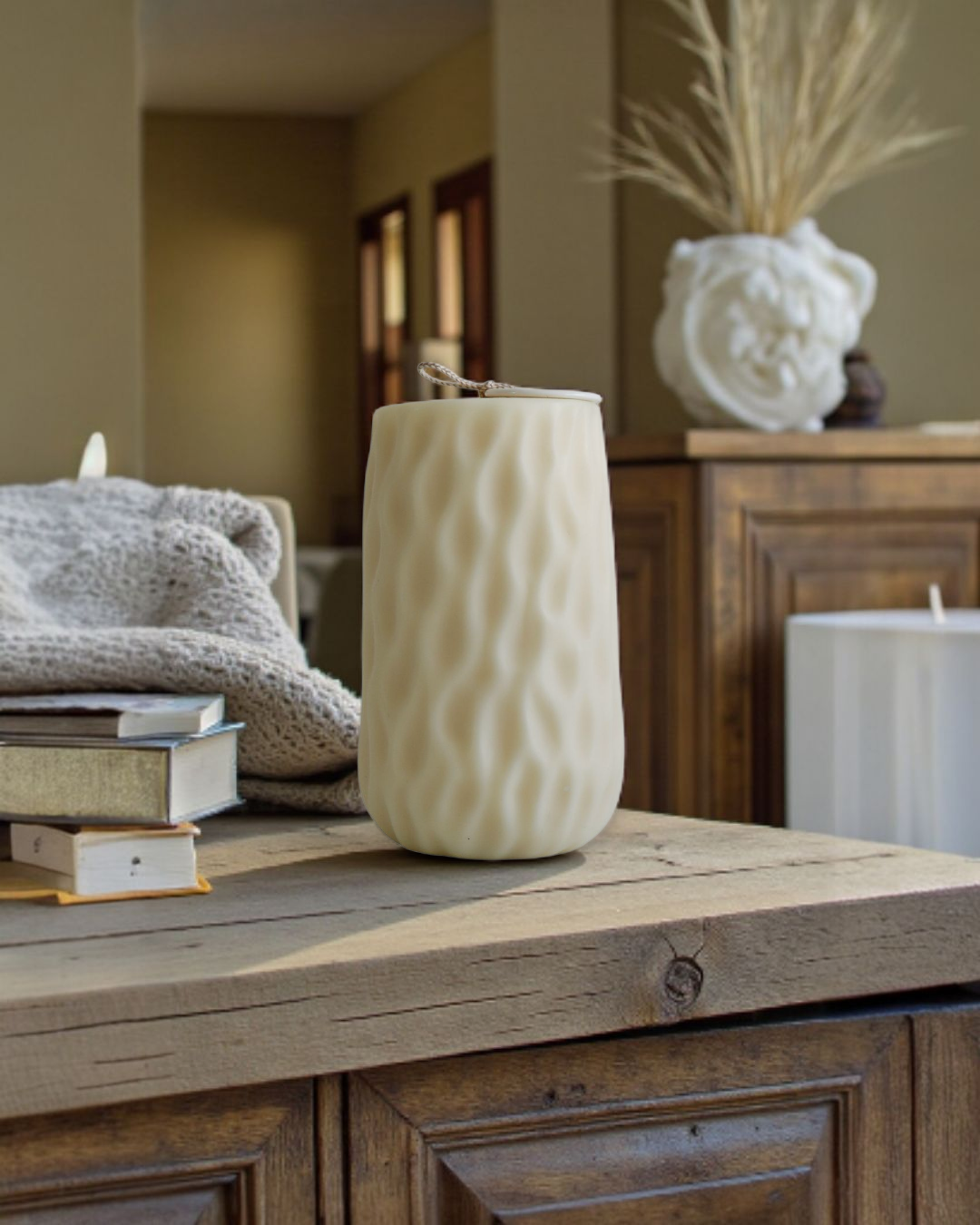Elevate the aesthetic in your home with these elegant Minimalistic Scented Soy Pillar Candles. This ribbed pillar candle is the epitome of sophistication and charm. Its timeless design and minimalistic aesthetic make it a versatile choice for any occasion.